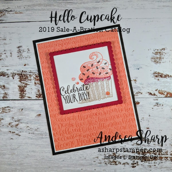 Hinged die-cut card featuring Hello Cupcake