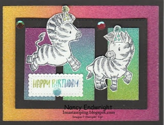 Imastamping in Indiana: Zany Zebras – Rainbow Glimmer Paper Birthday Card